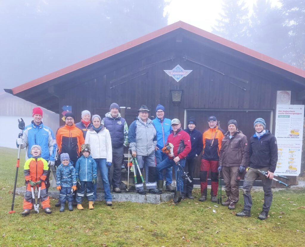 Trotz des herbstlich nebligen und nasskalten Wetters ließen sich die Helfer die gute Laune nicht verderben. Die Arbeiten in rund 800 Metern Höhe boten nicht nur körperliche Betätigung an der frischen Luft, sondern auch das gute Gefühl, gemeinsam etwas für die bevorstehende Langlaufsaison zu leisten.